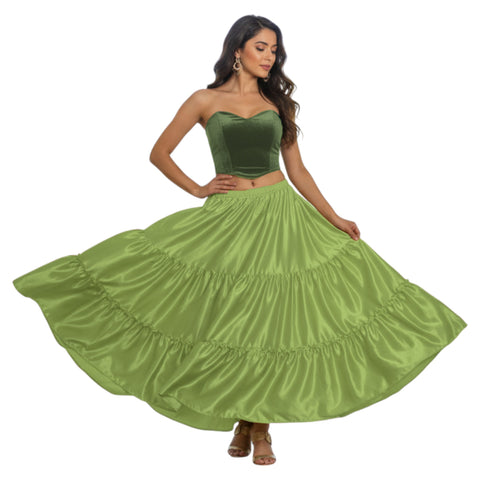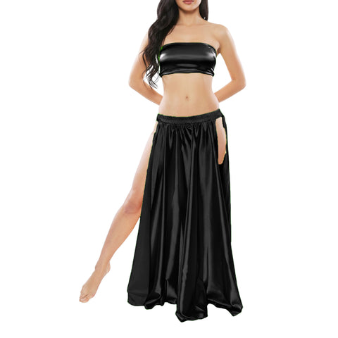 Satin Belly Dance Side Cut Skirt | Slit Flow Costume Plus Size | 41 Colors S1