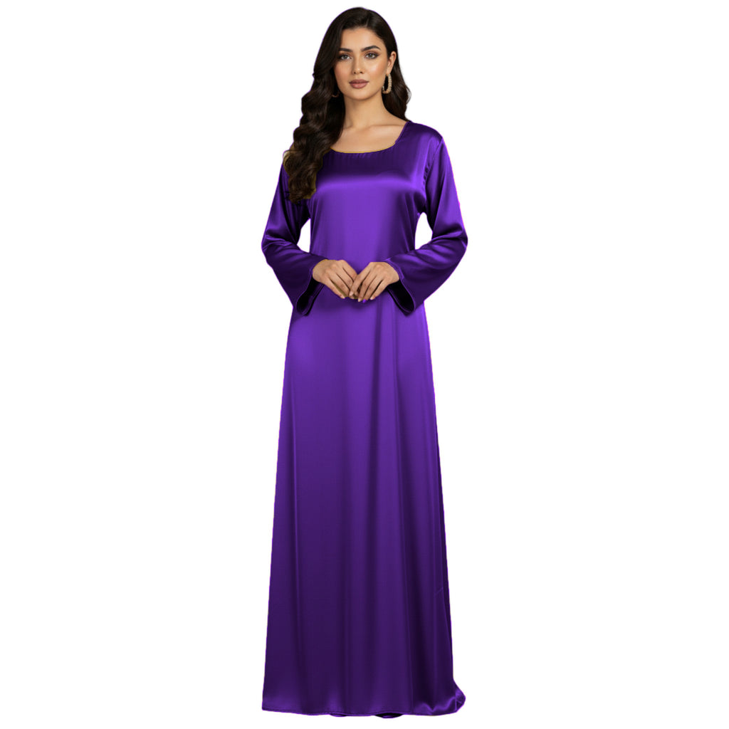 ? Modest Glamour: Satin Long Sleeve Full Length Gown (S-3XL, 41 Colors)