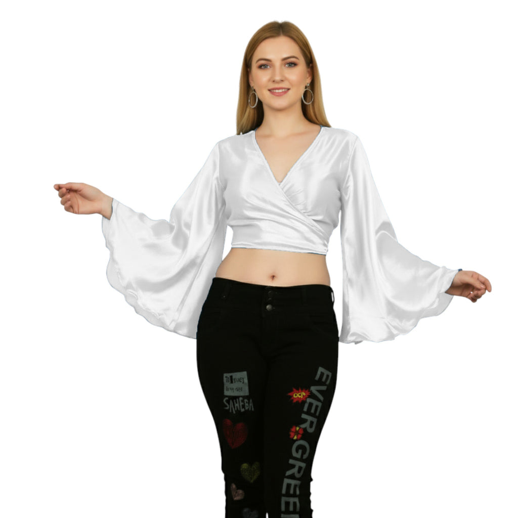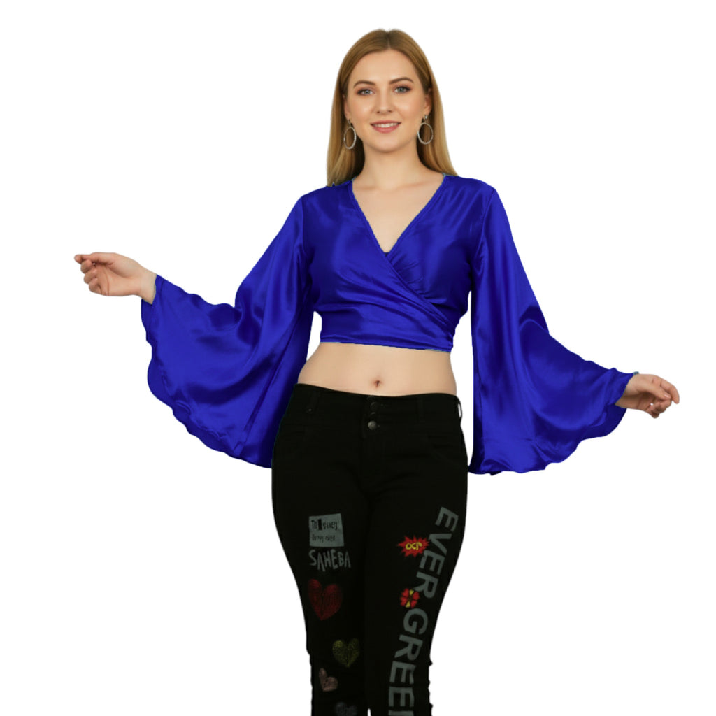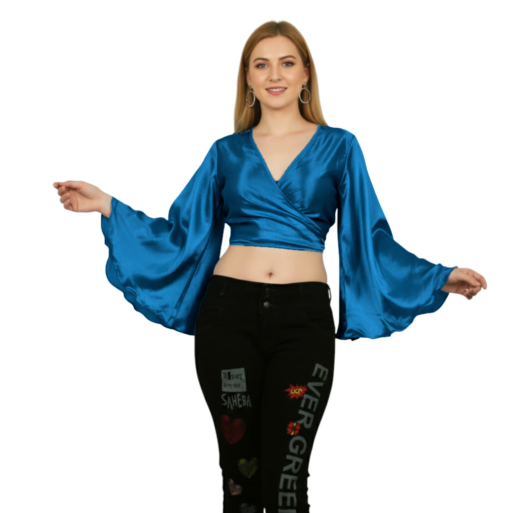 ? Customized Charm: Satin Ruffle Back Tie Crop Top (S-3XL, 41 Colors)