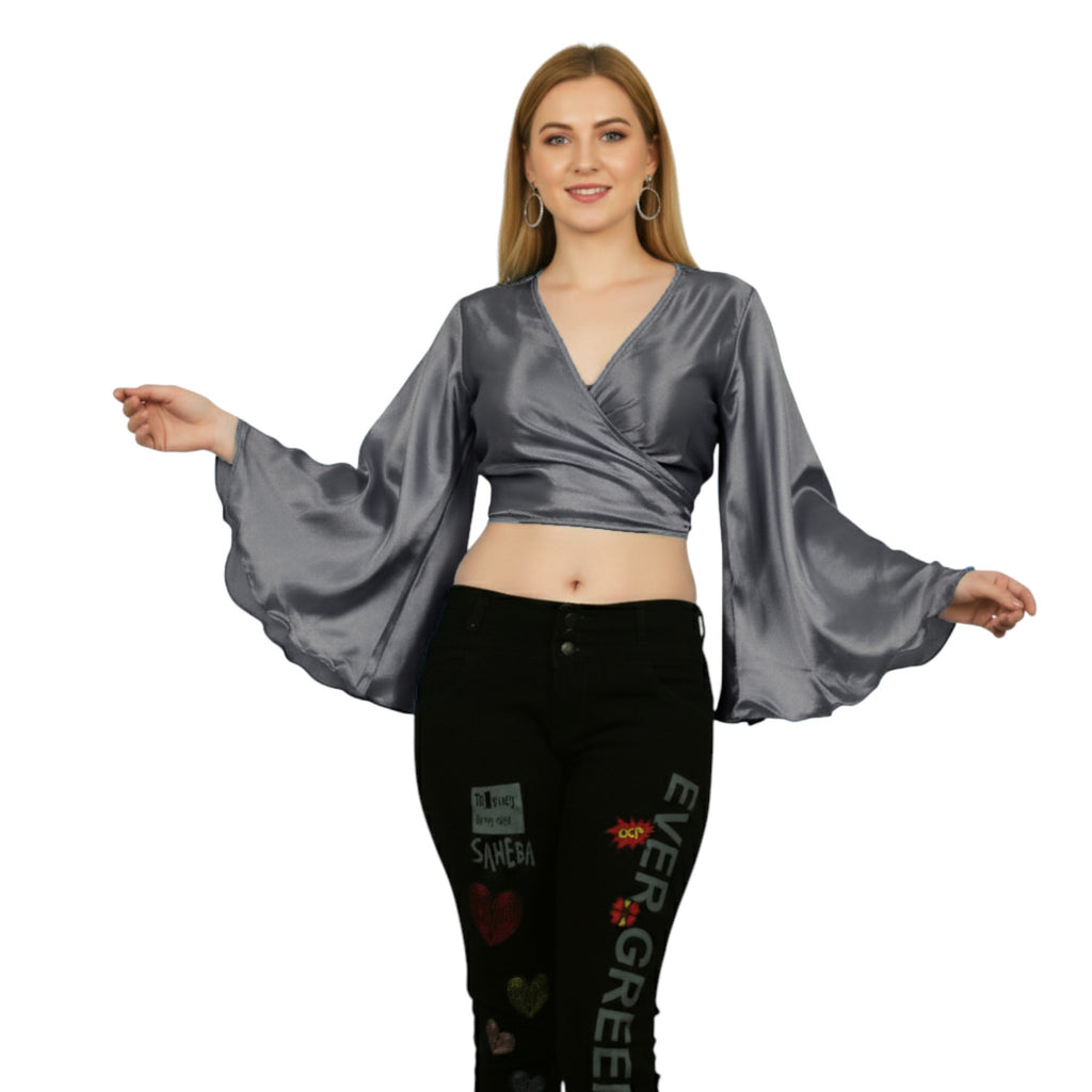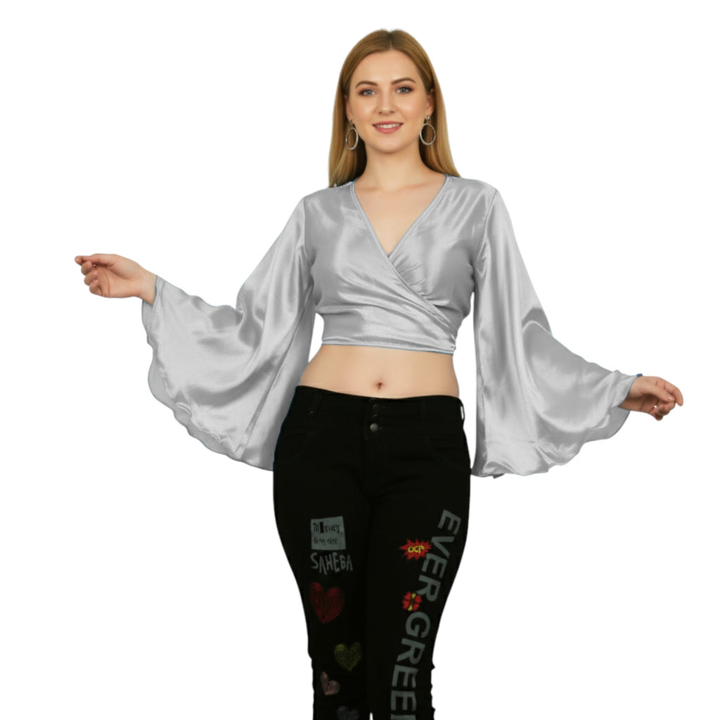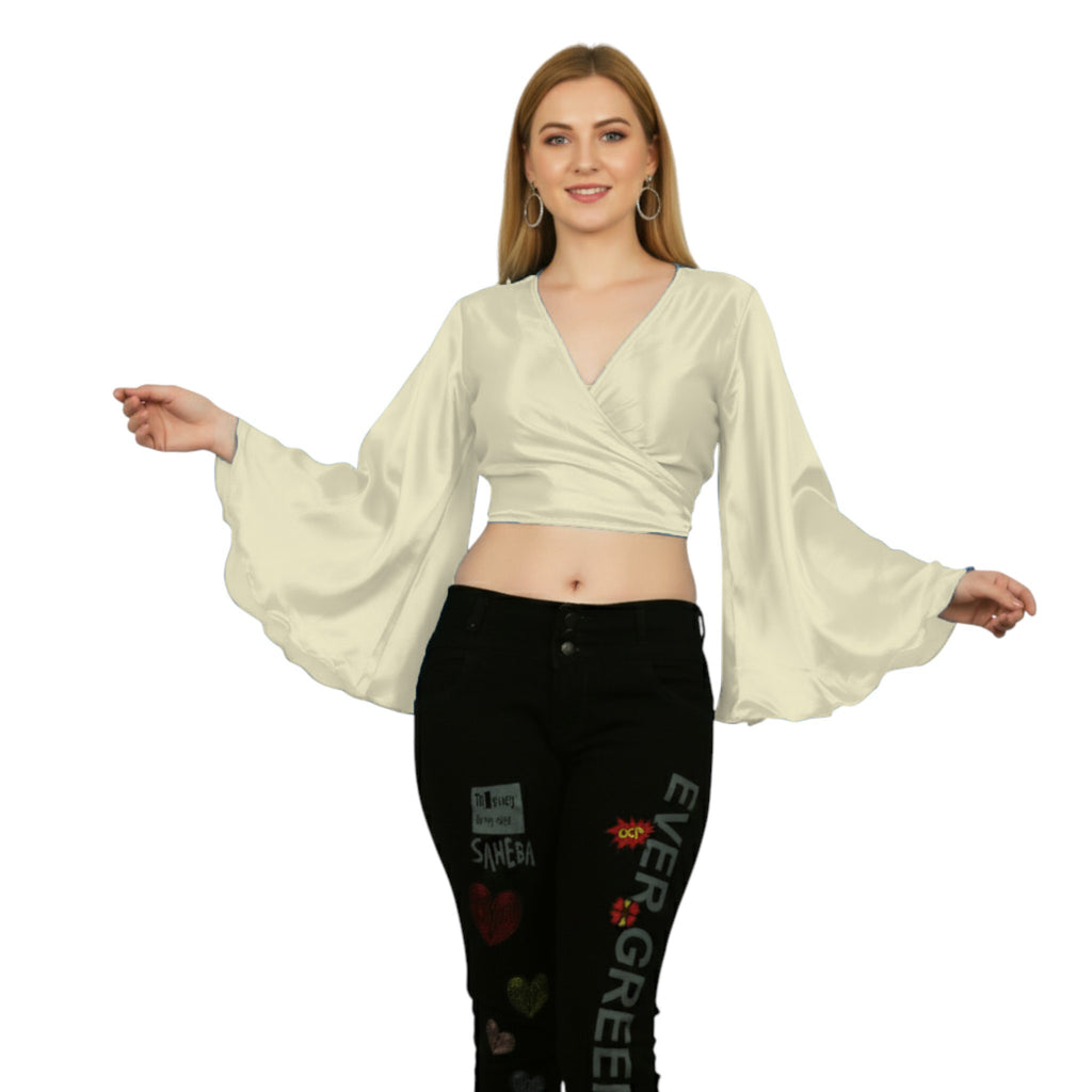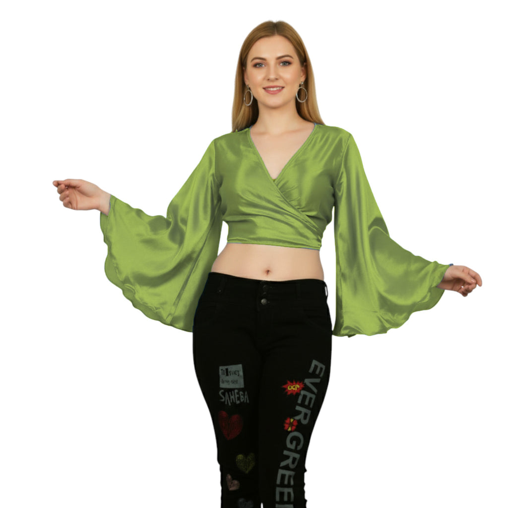 ? Customized Charm: Satin Ruffle Back Tie Crop Top (S-3XL, 41 Colors)