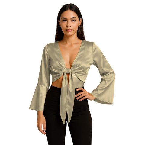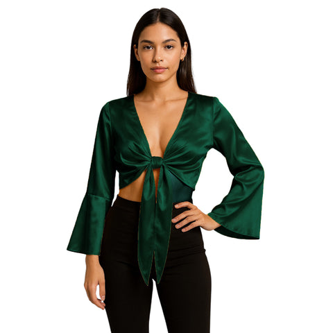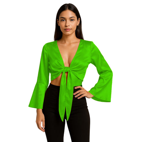 Type - Satin Ruffle Top Crop Top Color  - Select Color Size  - Select Size Style -  Satin Ruffle Top Length - 20" Material - Premium, Flowing,   ? Customized Charm: Satin Ruffle Back Tie...