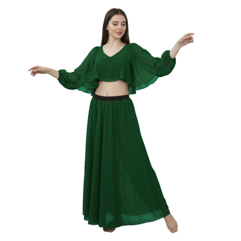 Type - Satin Belly Dance Costume Set  Color  - Select Color Size  - Select Size Style -  Belly Dance Costume Set Material - Premium, Flowing,   ? Theatrical Grandeur: Satin Full Sleeve Ruffle Top &...