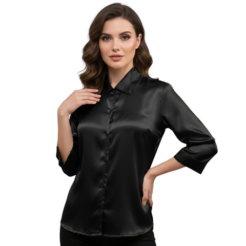 Type - Satin Button Down Shirt Color  - Select Color Size  - Select Size Style -  Short Sleeve Button Down Shirt Length  - 25"- 27" Material - Premium, Flowing,   ? Polished Perfection: Satin Point...