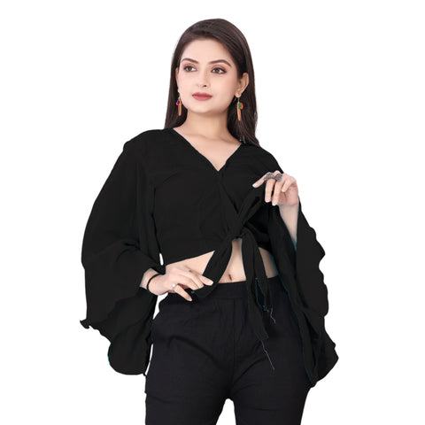 Type - Chiffon Ruffle Top Color  - Select Color Size  - Select Size Style -  Chiffon Belly Dance Ruffle Top Style - Belly Dance Ruffle Top Closer - Self Tie Material - Premium, Flowing, Sheer...