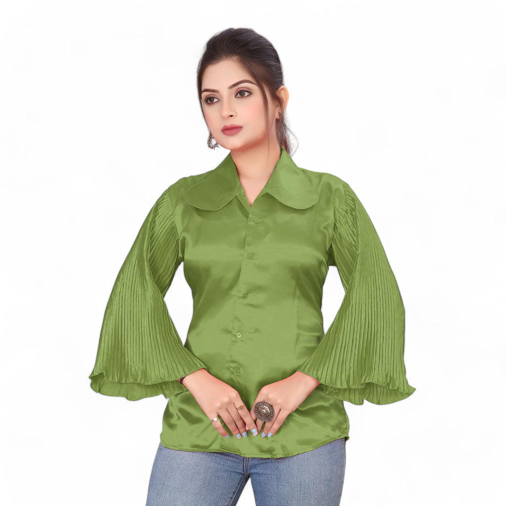 Expertly crafted, this Satin Button Down Shirt will elevate your wardrobe. The Fancy Collar adds a touch of elegance while the Flair Sleeves add a modern flair. Made with high-quality satin, this shirt offers a silky and luxurious feel. Perfect for any occasion, dress it up or down for a versatile and stylish look