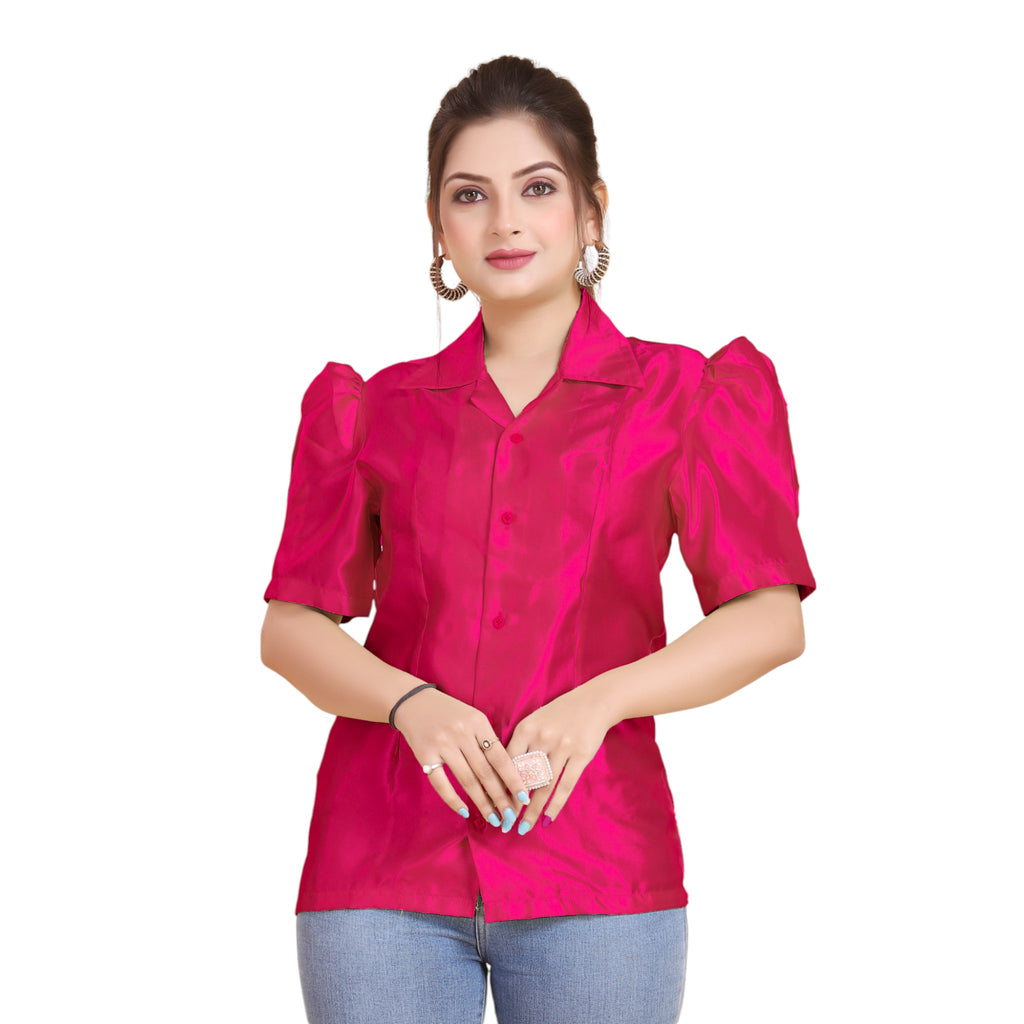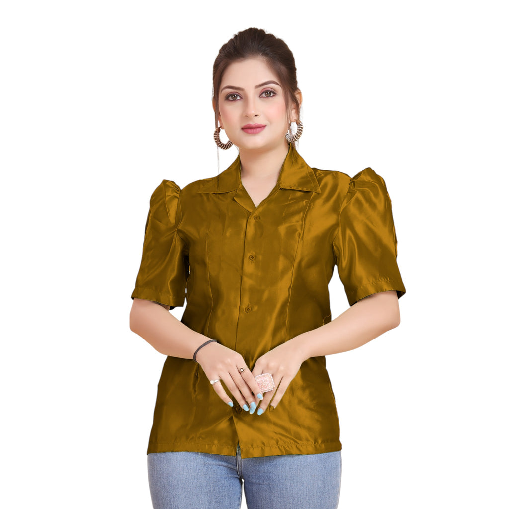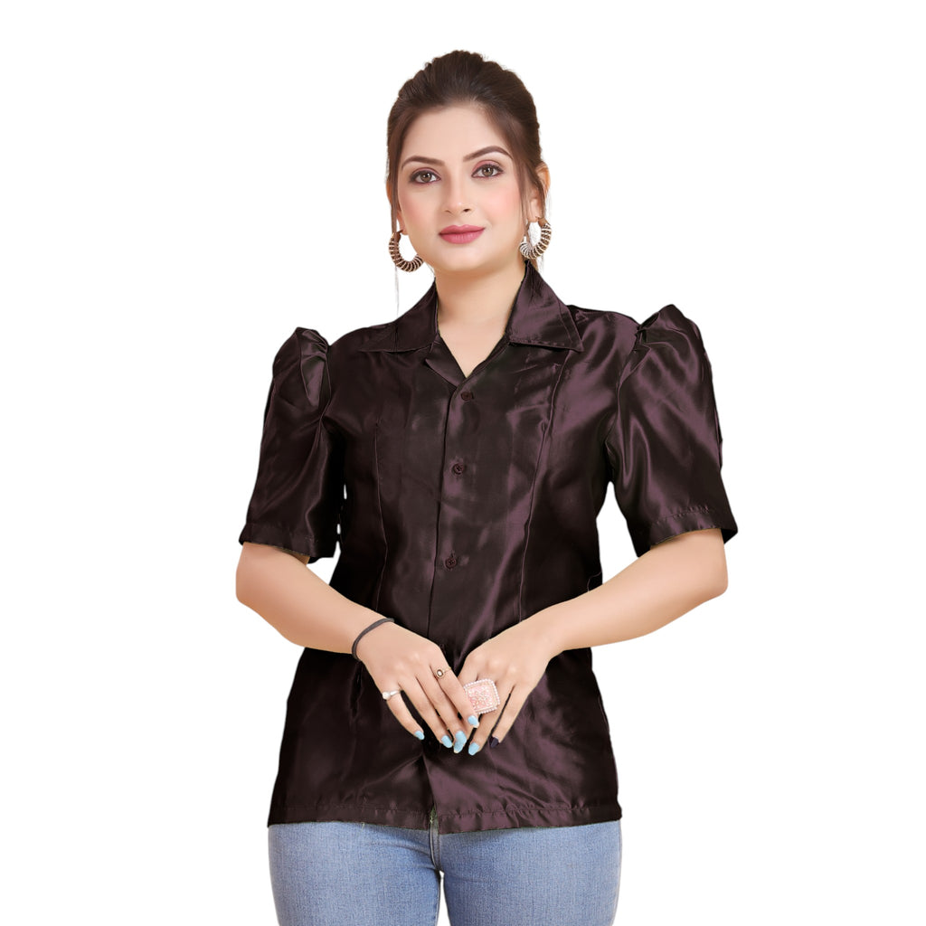 This Regular size Satin Puff Sleeve Button Down Shirt is a timeless classic that exudes sophistication. Its satin fabric and button down design elevate any look, while the short puff sleeves add a touch of femininity. Perfect for any occasion, this shirt is a must-have staple for any wardrobe