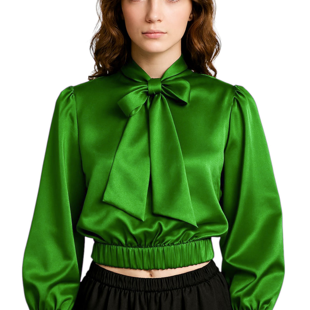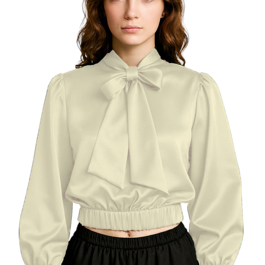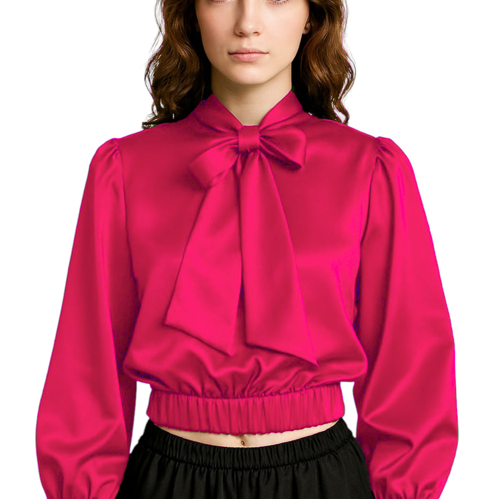 This satin bow shirt is the perfect addition to your wardrobe. Made with high-quality fabric, it offers a luxurious feel and sophisticated look. The satin bow detail adds a touch of elegance, making it versatile for both casual and formal occasions. Experience comfort and style with our regular size fit.