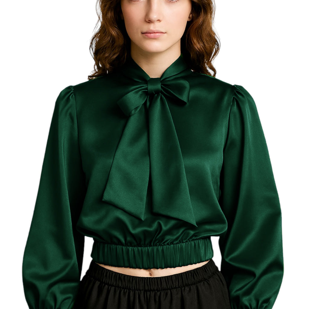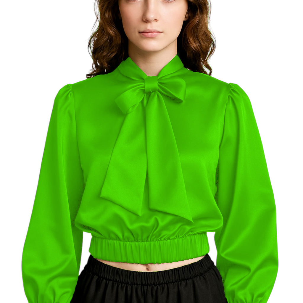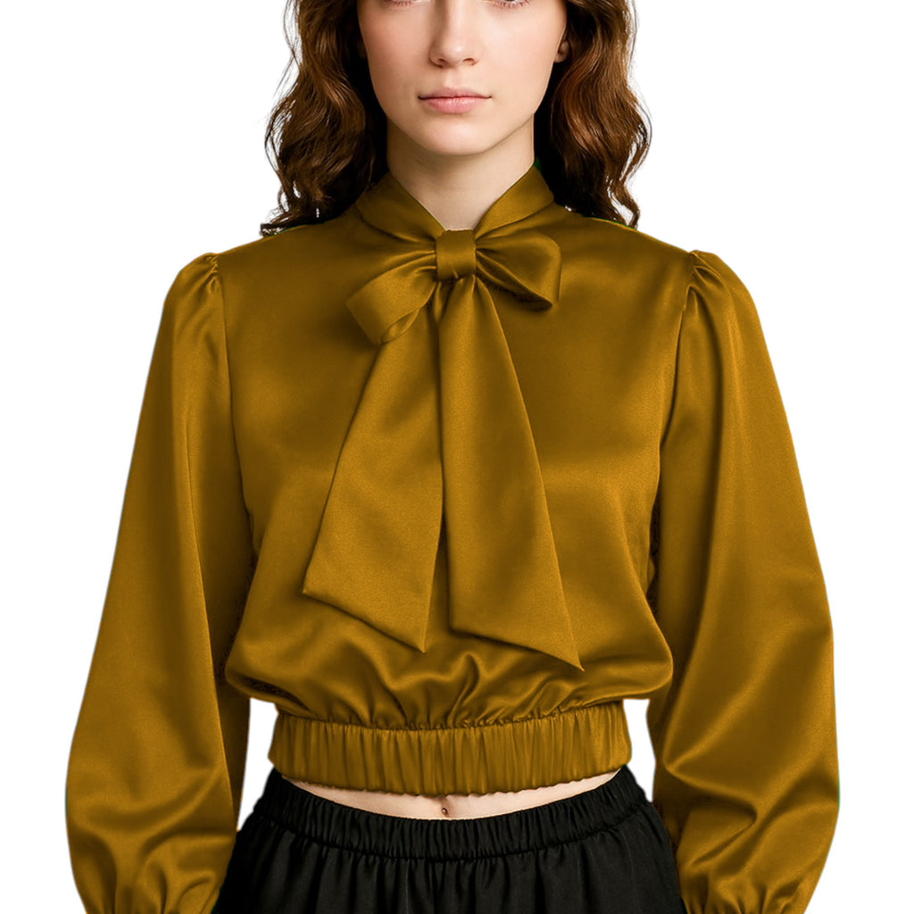 This satin bow shirt is the perfect addition to your wardrobe. Made with high-quality fabric, it offers a luxurious feel and sophisticated look. The satin bow detail adds a touch of elegance, making it versatile for both casual and formal occasions. Experience comfort and style with our regular size fit.