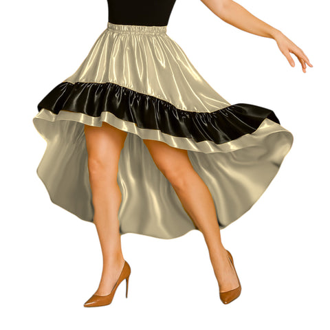 Satin Asymmetrical Dance Skirt Frill | High-Low Flow S-3XL S48