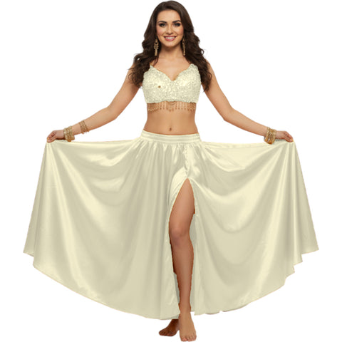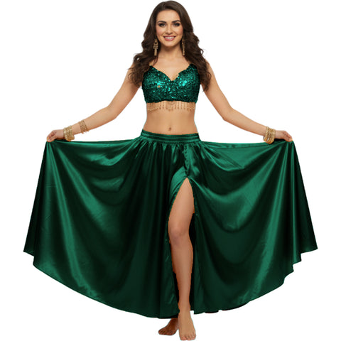 Satin Full Circle Belly Dance Skirt | Side Slit Flow S-5XL S2