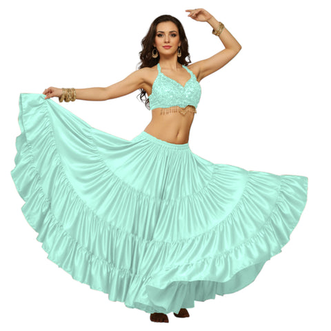Type - Satin 12 yard 4 Tier Belly Dance skirt Color  - Select Color Size  - Select Size Style -  12 yard 4 Tier Skirt Length - 38" Material - Premium, Flowing,   ? Spectacular...