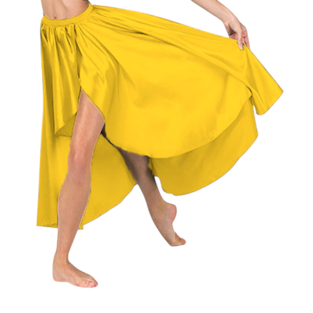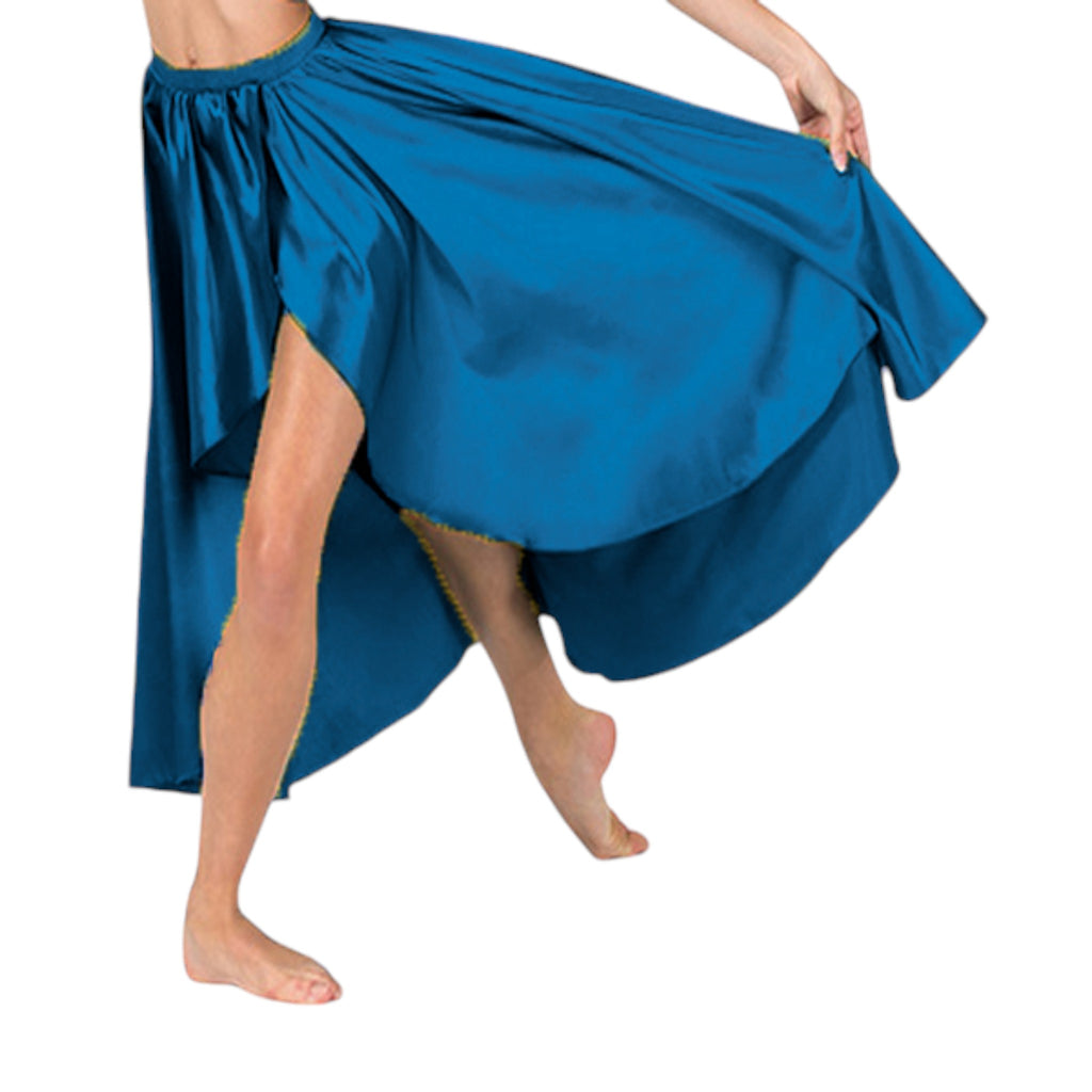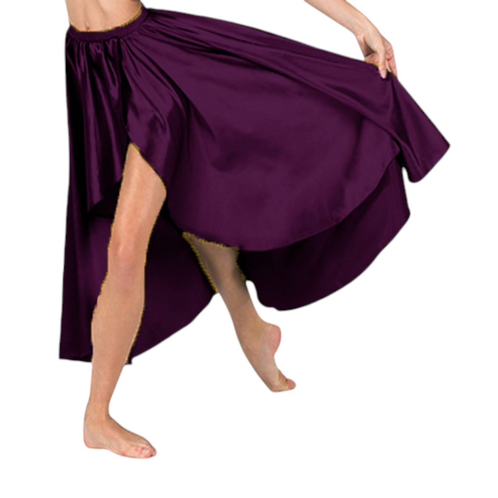 This satin skirt is perfect for a variety of dance styles such as belly dancing and ballet. The unique asymmetrical design adds a touch of elegance to your movements, while the high low hemline allows for ease of movement and showcases your technique. Available in regular size this skirt is a must-have for any dance enthusiast.