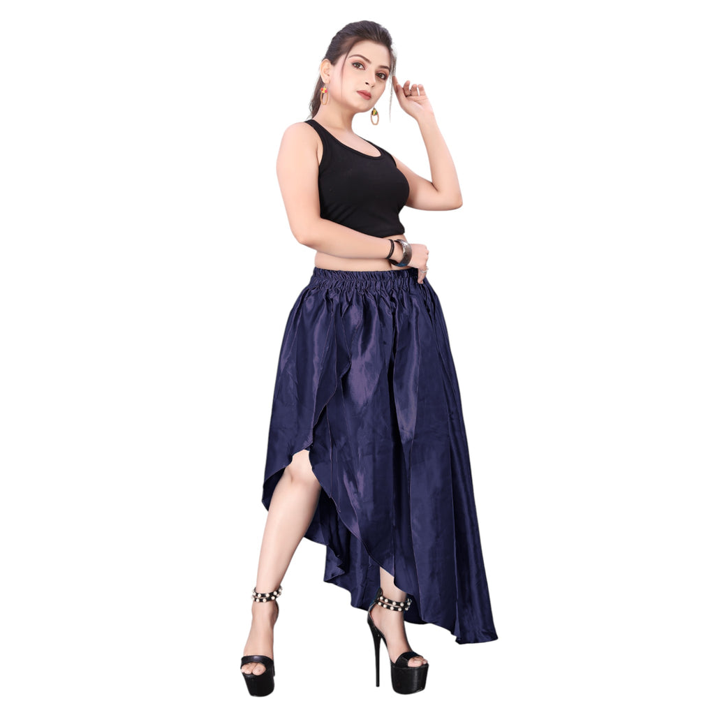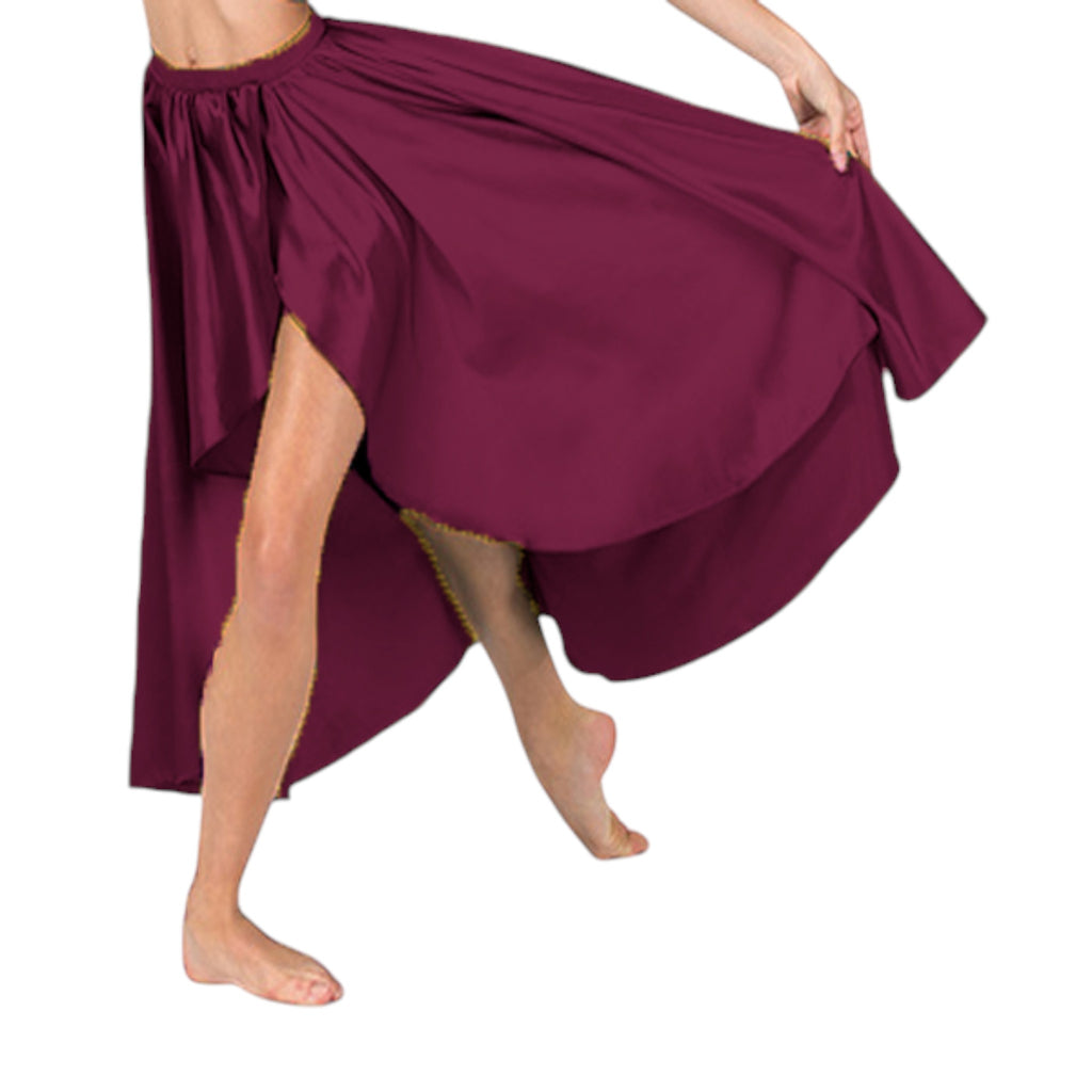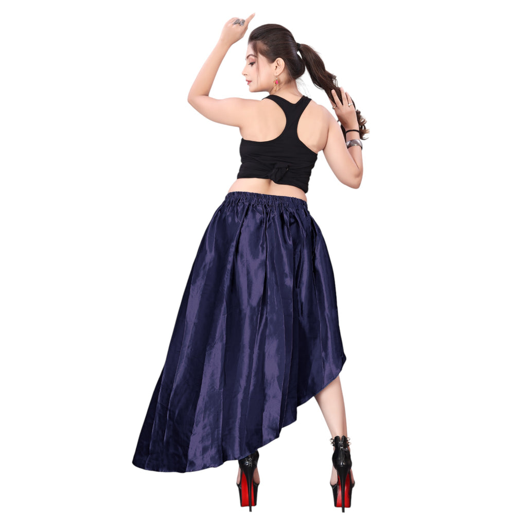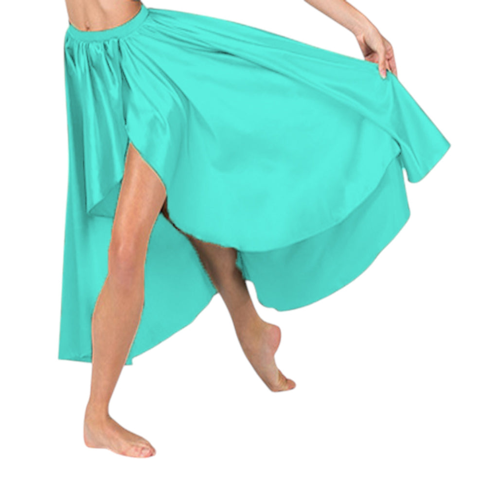 This satin skirt is perfect for a variety of dance styles such as belly dancing and ballet. The unique asymmetrical design adds a touch of elegance to your movements, while the high low hemline allows for ease of movement and showcases your technique. Available in regular size this skirt is a must-have for any dance enthusiast.