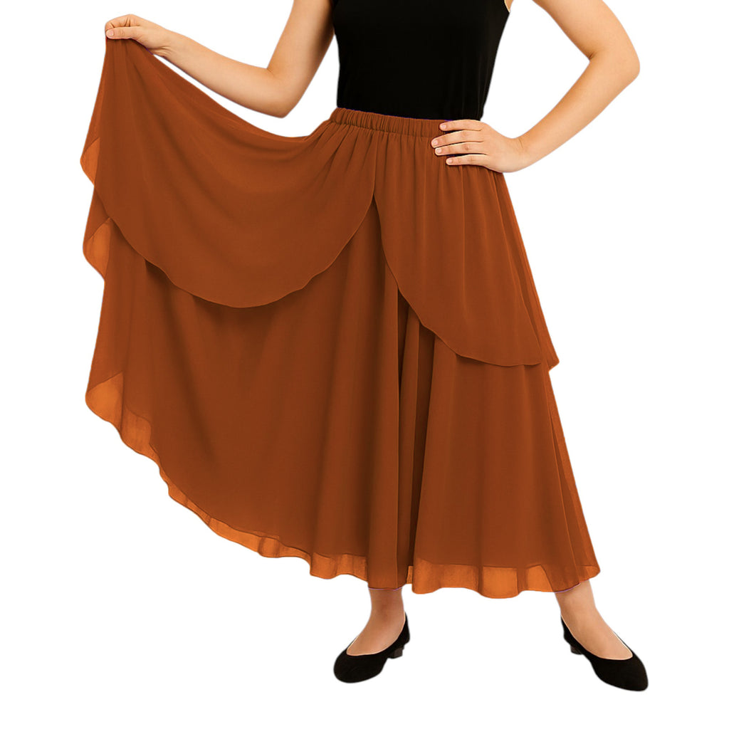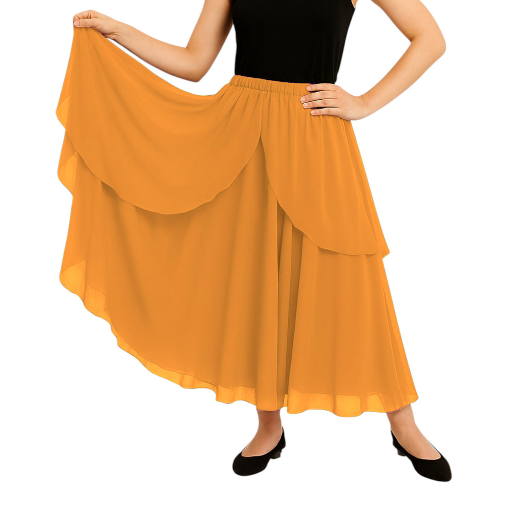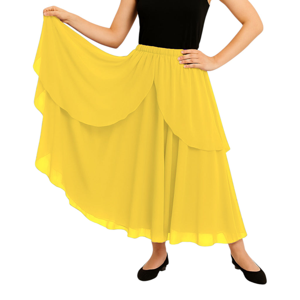 Add depth, volume, and beautiful flow to your performance with our Chiffon 2-Layer Belly Dance Skirt. This popular style is designed with two layers of sheer, lightweight chiffon, ensuring maximum movement and a dynamic visual effect as you shimmy and spin. It's the perfect fancy foundation for any Belly Dance, Tribal Fusion, or Lyrical costume.