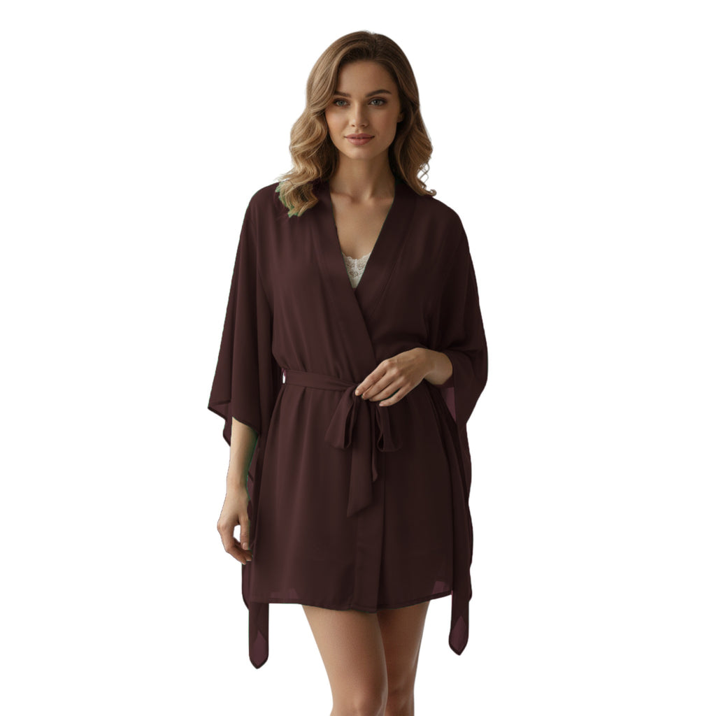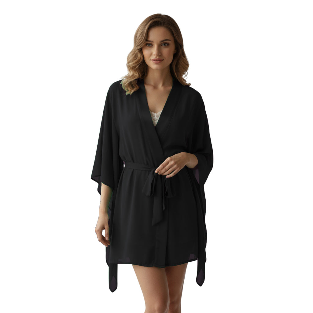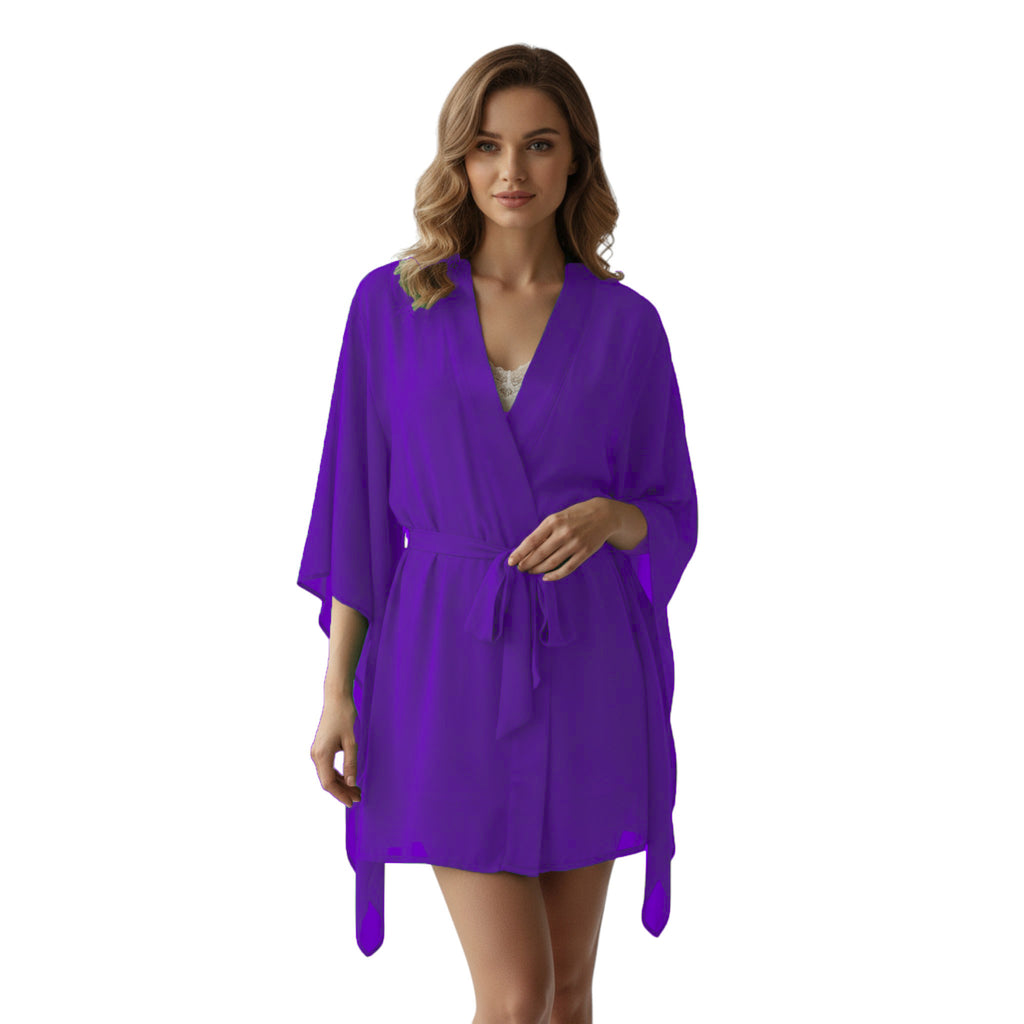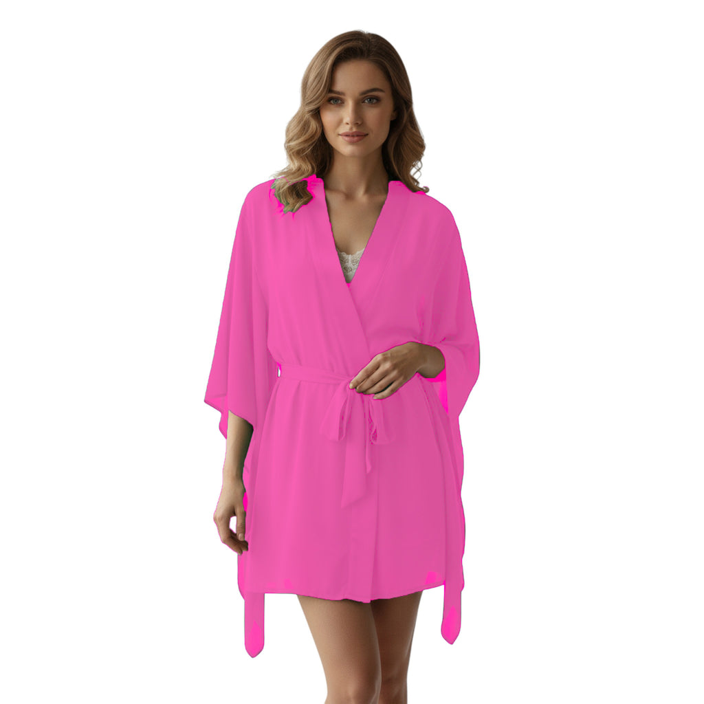 Drape yourself in comfort and elegance with our stunning Chiffon Nightwear Bathrobe. Perfect for a luxurious morning routine, an elegant poolside cover-up, or a sophisticated lingerie layering piece. The lightweight, sheer fabric and flowy silhouette make this robe an essential addition to your sleepwear and loungewear collection.