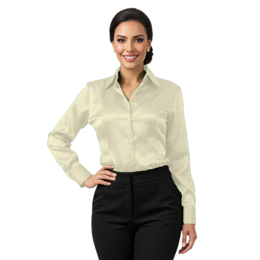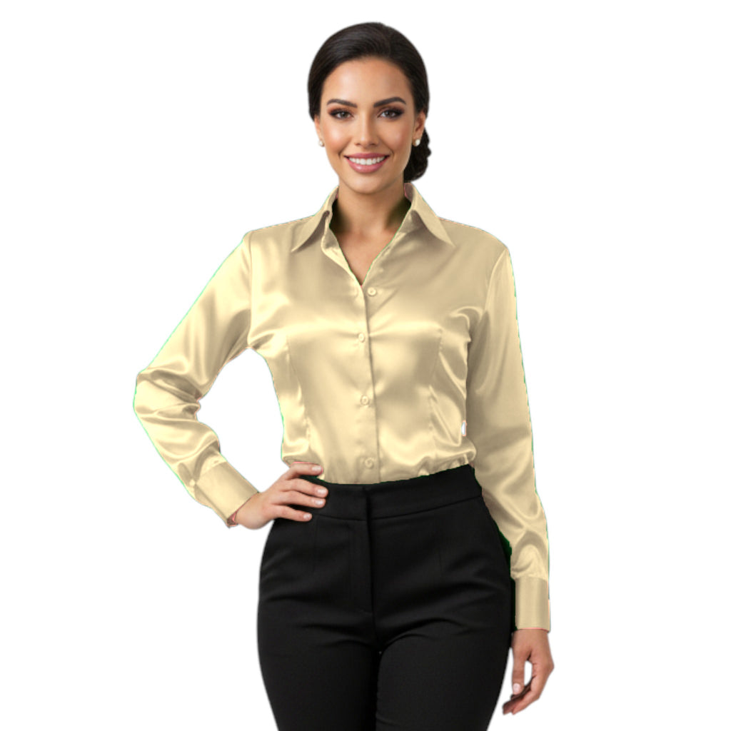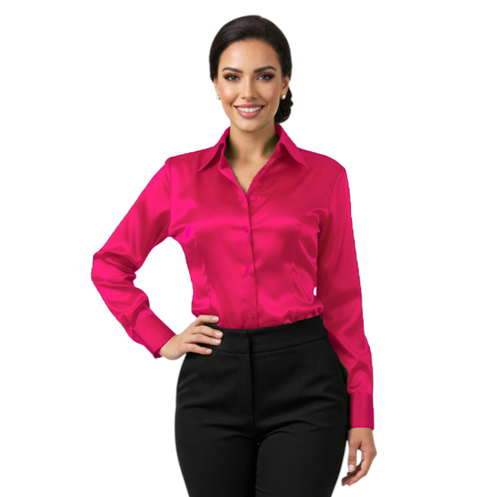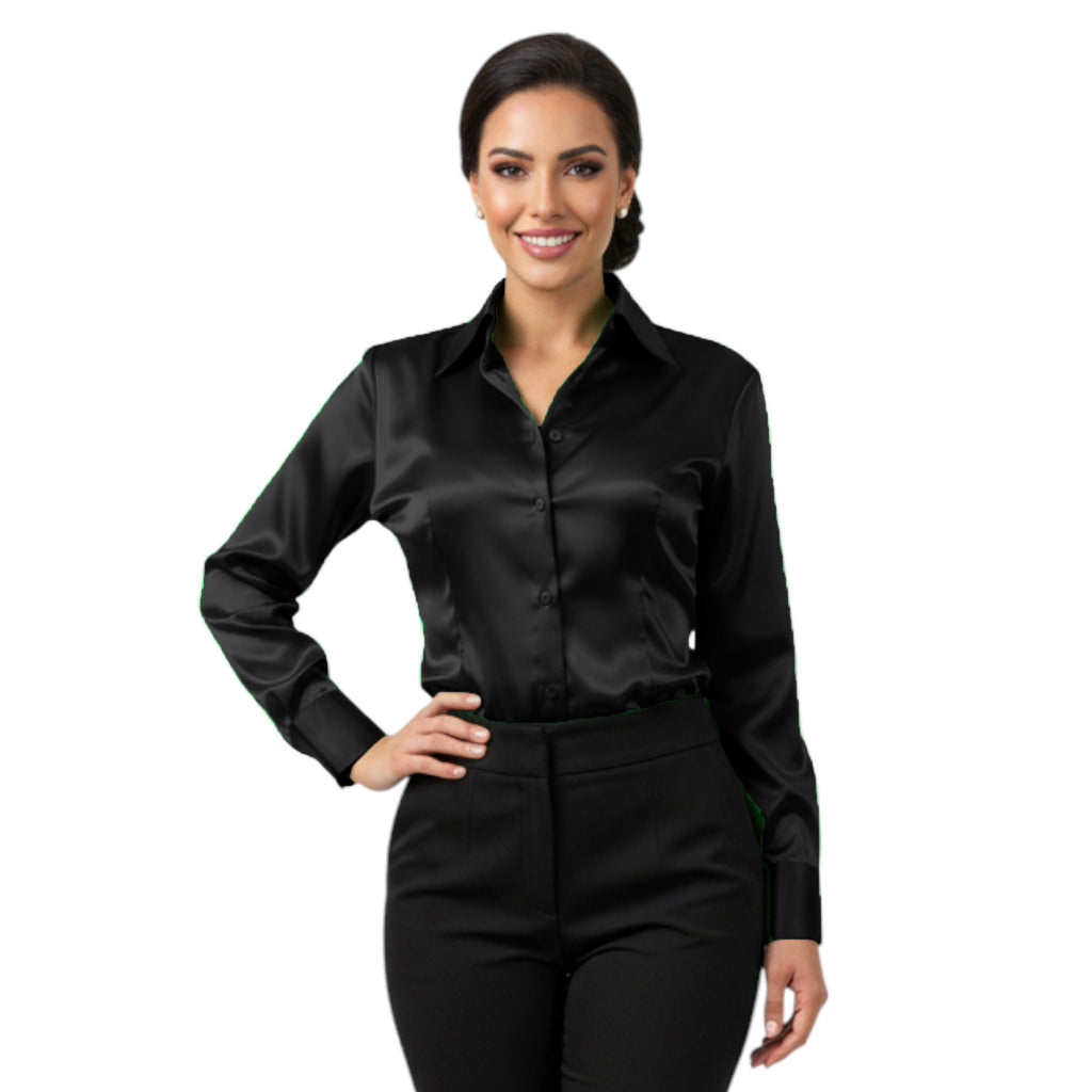 Elevate every outfit with the timeless sophistication of our Satin Long Sleeve Button-Down Shirt. Crafted from smooth, high-shine satin, this shirt offers a beautiful drape and a luxurious feel against the skin. It features a traditional collar and cuff design, making it a perfect foundation for professional office wear, or a stunning standalone piece for evening glamour.