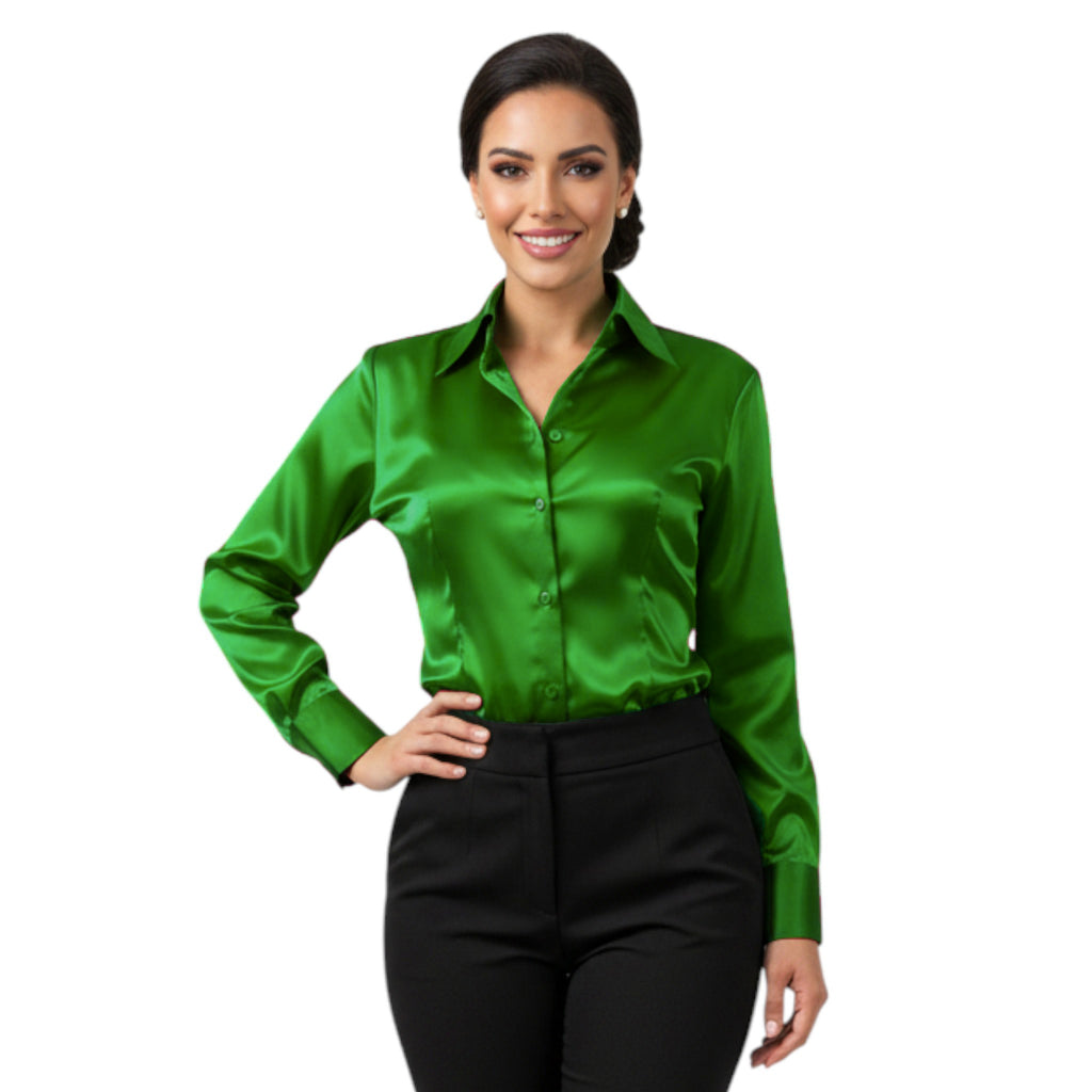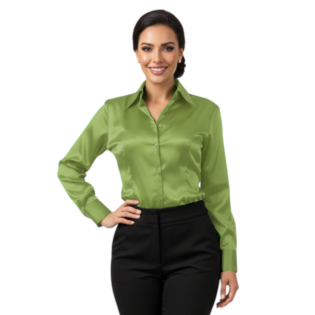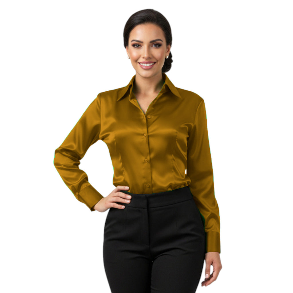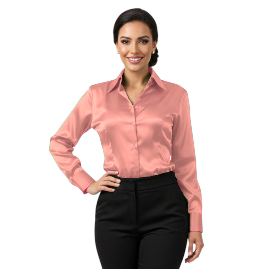 Elevate every outfit with the timeless sophistication of our Satin Long Sleeve Button-Down Shirt. Crafted from smooth, high-shine satin, this shirt offers a beautiful drape and a luxurious feel against the skin. It features a traditional collar and cuff design, making it a perfect foundation for professional office wear, or a stunning standalone piece for evening glamour.